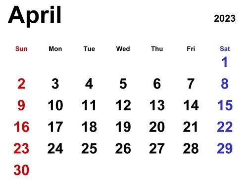 April Calendar for Youth Group: