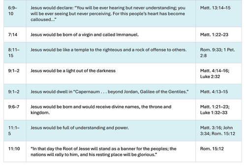Nevertheless, Isaiah is rich with prophecy that points to the coming Messiah (Greek word for Messiah is “Christ”). For example, take a look at these passages we have covered so far from Isaiah [listed on the left], and how they are fulfilled in the New Testament [on the right]. This might be a blessing to do together in your home-groups or in your personal devotional time.