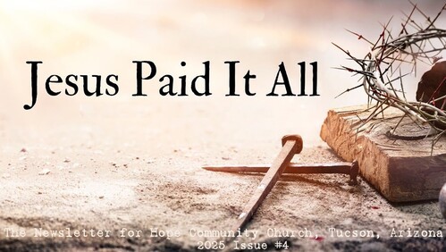 Reserve the date - Sunday, April 27 for Hope Seniors Lunch in the Community Room. For details contact Bob Whren, 904-887-7019 or Merrillee Whren, 520-304-6773.