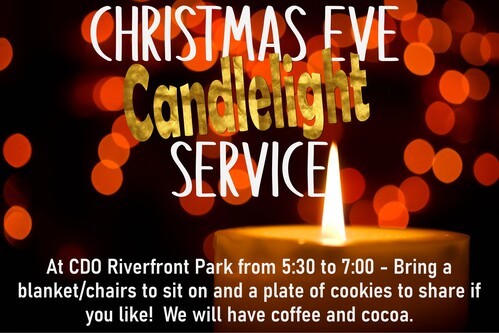 December 24: No morning service – Christmas Eve Service at Riverfront Park
