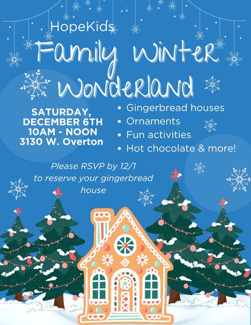 We hope you can join us at our Family Winter Wonderland on December 6th. It will be a lot of fun! Be sure to sign up by December 1st.