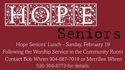 Hope is in the process of forming a new team to serve at the Camp in July. There will be an informational meeting on Sunday, February 12, following the morning service. A table will also be set up in the lobby at church on Sunday, February 5 & 12 if you have any questions or you can contact Frank (520-349-3438) or Beth Bumb (520-349-6574) if you need more info.