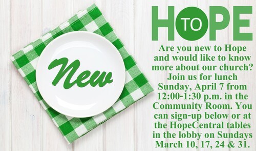 Hope Seniors' Lunch: Sunday, March 3 following the service in the Community Room.