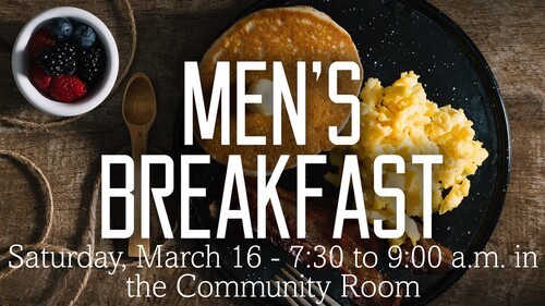 Men's Breakfast - March 16 from 7:30 - 9:00 a.m. in the Community Room