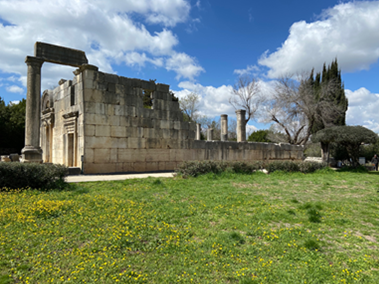 While in Israel, we got to drive a few hours north to the border of Lebanon. For us Zonies, it felt like driving to Flagstaff - you just keep gaining and gaining elevation and begin to be surrounded by large pines, with a snowcapped mountain getting nearer and nearer. The people of Israel sent gifts to this area in these verses as a trade for their cedar timbers. (Shown here is a synagogue up near the border of Lebanon. This building was built in about 300 A.D.)