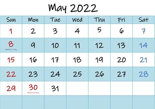 May Calendar for Youth Group