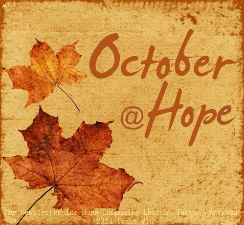 Our next baptism is Sunday, October 6 following the worship service. If you are interested in being baptized, please contact Gina at info@hopetucson.com.
