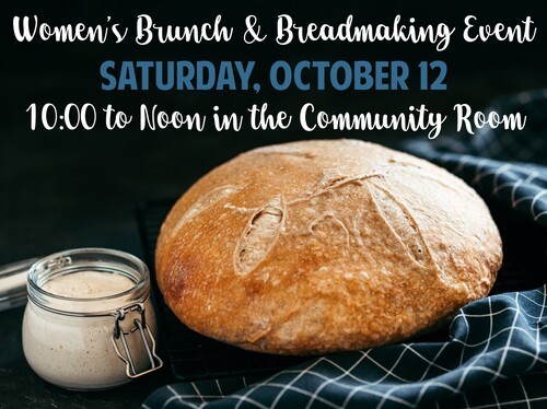 Ladies join us on Saturday, October 12 from 10:00 a.m. to noon in the Community Room for brunch and then followed by a tutorial from Mary Ruland on how to make sourdough bread. Sign-up below to let us know that you are coming and what you might bring for brunch!
